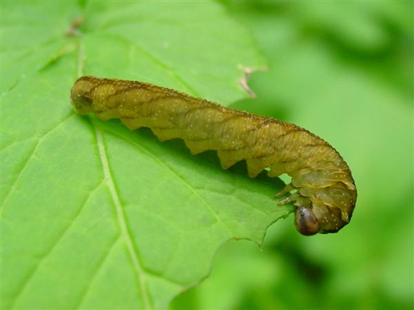 of andere bladwesp, een zogenaamde bastaardrups. Deze heeft in tegenstelling tot