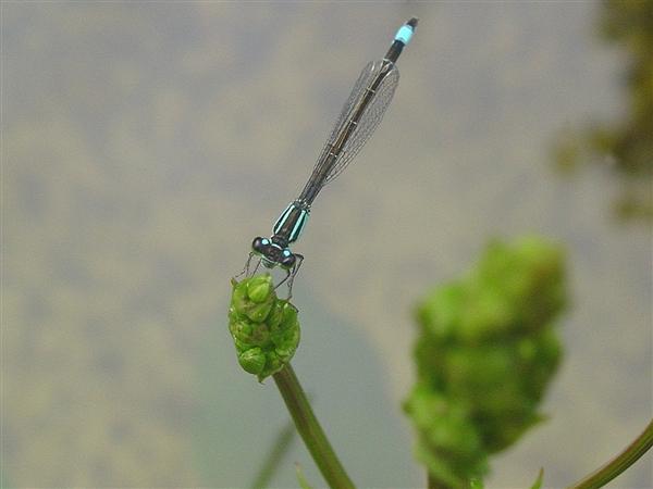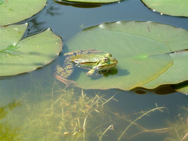 azuurwaterjuffer. De groene kikkers lieten zich van alle kanten horen. Ook heel