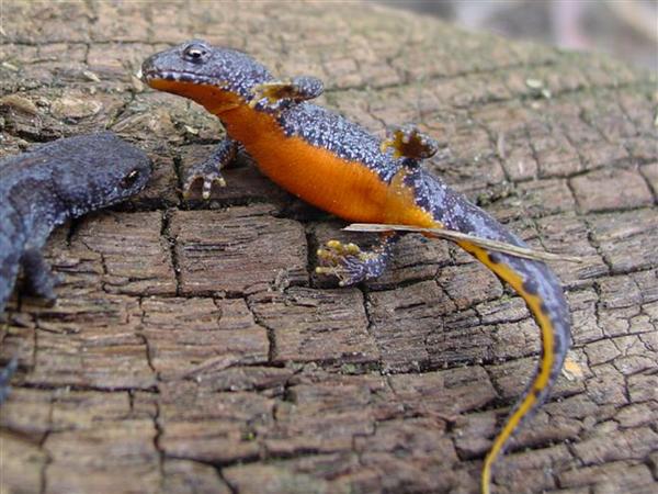 Verder bemerkten we nog wat mooie paddestoelen, waaronder de zadelzwam, tijgertaaiplaat, tijgerhoutzwam en enkele bekerzwammen. Ook enkele geaderde witjes en oranjetip werden gezien, alsook heel wat eitjes van oranjetip op look-zonder-look. In de ronde poel stond voor de eerste keer fijne waterranonkel in bloei. Ook de alpenwatersalamander werd reeds opgemerkt.