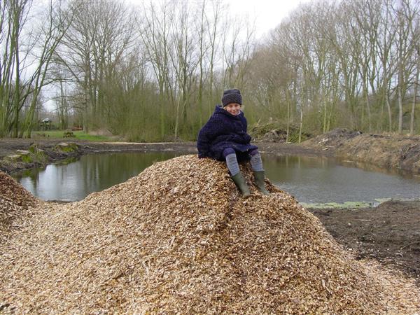 deelden die mening. Rond de vierkante vijver zijn de sporen van graafmachines en